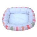 おしゃれなストライプのウサギ用の大きめベッドです。ふんわりした寝心地のボア生地としっかりしたコットン生地の組み合わせ。フェレットやモルモットにも使えます。