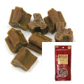国内の食肉工場で処理する高品質の鹿肉のみを使用し、その他の原材料も人が食べられる食材だけを厳選して作られています。 原材料の仕込から包装まで、熊本の自社工場で一貫製造しています。食べやすいひと口サイズで、ひと粒が小さく、手でちぎることもできる硬さです。愛犬用のおやつですが肉食のフェレットにも安心してあたえられるおやつです。